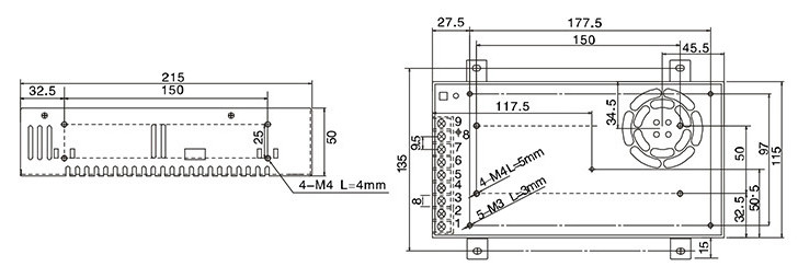 電源尺寸:215mmx115mmx50mm