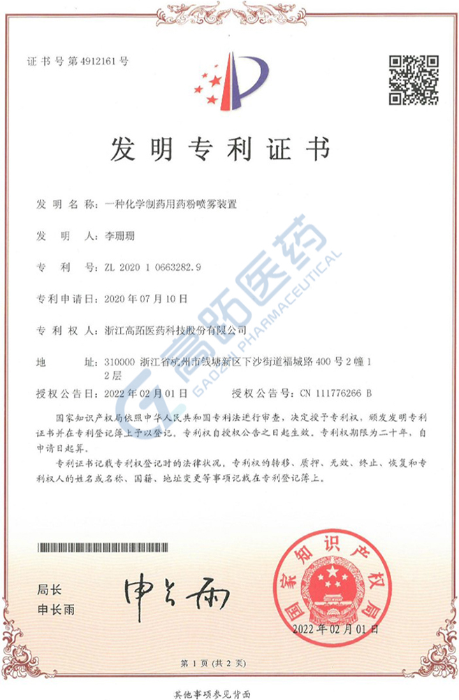 公司集“研、產、銷”為一體,于2021年08月取得藥品生產許可證,并于2021年12月通過藥品GMP符合性檢查。截至目前,我司藥品研發立項100余項,已獲得50個《藥品注冊證書》、4項發明專利、11項外觀專利。