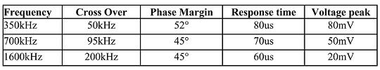 轉換頻率越高就帶寬越大,過沖值就越低。低瞬間電壓過沖對于一些新的性能處理器是必須的,因為它們的調節精度要求可能包括瞬時電壓峰值是3%。