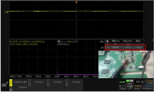 注:通道1信號(hào)幅度雖然非常小,但通過FFT分析還是可以定位出600K頻點(diǎn)的干擾。