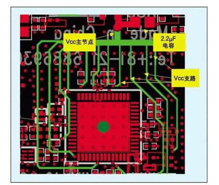 (13)大面積的電源層能夠使Vcc布線變得輕松,但是,這種結(jié)構(gòu)常常是引發(fā)系統(tǒng)性能惡化的導火索,在一個較大平面上把所有電源引線接在一起將無法避免引腳之間的噪聲傳輸。反之,如果使用星型拓撲則會減輕不同電源引腳之間的耦合。