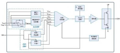 l斜坡回路根據VIN和PWM信號生成斜坡電壓。經優化的斜坡補償值僅為下降斜率斜坡電壓的一半。