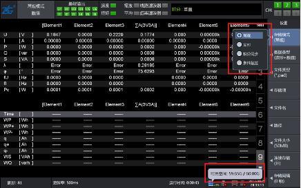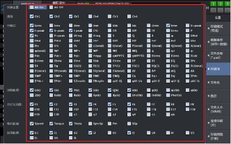 第五,存儲項是設置中最關鍵的一步,點開存儲項菜單后,會看到功率分析儀所能分析記錄的所有數據,我們根據自己的需要進行勾選對應通道和參數,只有完成存儲項的設置,才能記錄對應的數據;