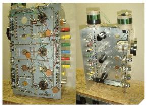 隨著真空管變小和頻率增加,鋁制底盤盒經常用于電路的試驗板試驗。在底盤中穿孔用于安裝真空管插槽,端子板允許電路的點對點布線,如圖B所示。這種技術減小了電路尺寸,而鋁制底盤提供了高頻電路經常需要的低阻抗接地層。
